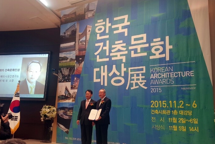 제해성(건축학과, 사진) 교수가 한국건축문화대상이 선정한 '올해의 건축문화인상'을 수상했다. 시상식은 5일 오후 2시 건축사회관 대강당에서 열렸다. 제 교수는 2012년 9월부터 지난달까지 국무총리실 산하 건축도시공간연구소 소장으로 재직하며 건축 및 도시와 관련한 다양한 정책·제도 연구에 기여한 공로를 인정받았다. 건축도시공간연구소는 국내 최초의 건축도시 전문 국책연구기관으로 건축기본법, 건축법, 경관법, 녹색건축물 조성지원법, 건축서비스산업 진흥법, 한옥 등 건축자산 진흥에 관한 법률 등 국가 건축의 큰 그림을 제시하고 국가 정책 연구를 수행하는 기관이다. 소장 재직기간 동안 ▲녹색건축물 조성지원법 ▲건축서비스산업 진흥법 ▲한옥 등 건축자산 진흥에 관한 법률 ▲도시재생 활성화 및 지원에 관한 특별법을 제정했고, △국가한옥센터 △국가공공건축지원센터 △도시재생지원기구 △녹색건축센터 등 정부가 추진하는 각종 정책사업도 지속적으로 지원했다. 제 교수는 수상과 관련한 인터뷰에서 “연구소 재직기간 동안 가장 크게 염두에 둔 것은 국책연구소 본연의 설립 취지에 부합하도록 정책 기여도를 강화하는 것"이었다며 "정부출연 연구기관이라는 특성을 살린 연구를 통해 사회 현안과 이슈에 선제적으로 대응하고 정부 정책을 적극적으로 지원하기 위해 노력했다"고 밝혔다. 제 교수는 서울대에서 건축학을 전공한 뒤, 미국 MIT와 펜실베이니아대에서 석·박사 학위를 받았다. 1987년부터 25년간 우리학교 교수로 재직 중이다. 그 동안 공과대학장, 한국도시설계학회 회장, 행정중심복합도시 건설청 총괄기획가 등을 역임했다.