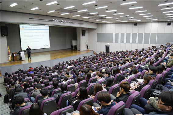 2015학년도 1학기 대우장학 장학증서 전달식이 7일 오전 율곡관 영상회의실에서 열렸다. 대우장학은 단과대학 학년별 수석에게 주어지는 장학금이다. 이날 행사에는 추호석 대우장학재단 이사장과 이사진, 장학생들이 참석했다. 우리 학교 김동연 총장과 각 단과대학 학장과 대학본부 처장을 비롯한 교직원들도 함께 자리했다. 조재형 학생처장의 대우장학 현황보고를 시작으로 추호석 이사장의 장학증서 전달, 장학생 선서, 장학생 대표의 감사 편지 낭독 등이 이어졌다. 김형욱(경제학과 2학년) 학생이 전체 장학생 대표로 선서를 했고 김진현(국어국문학과 4학년) 학생이 감사의 글을 낭독했다. 대우장학재단 이사진의 인사말씀도 이어졌다. 추호석 이사장은 격려사를 통해 “오늘 장학금을 받은 학생들을 진심으로 축하하며 학업을 위한 그 열정에 아낌없는 박수를 보낸다”며 “장학생들이 오늘 받은 장학금 그 이상의 것을 후배들에게 되돌려 줄 수 있는 훌륭한 인재가 되기를 기대한다”고 말했다. 축사를 맡은 김동연 총장은 30대 초반 미국 유학 시절의 경험담을 소개하며 “정말 내가 하고싶은 일이 무엇인가 하는 화두를 가슴에 품고 우리 사회의 발전에도 기여할 수 있는 인재가 되기를 바란다”며 “장학생들에게 축하를 보내며 이러한 기회를 주신 대우장학재단에도 깊은 감사를 드린다”고 전했다. 2015학년도 1학기 대우장학생 명단은 아래와 같다. ▲공과대학 - 윤현노(건설시스템공학과 4학년), 김무중(기계공학과 3학년), 서다희(환경공학과 2학년), 이상호(기계공학과 1학년) ▲정보통신대학 - 김정욱(전자공학과 4학년), 이상수(전자공학과 3학년), 박가현(미디어학과 2학년), 정윤선(전자공학과 1학년) ▲자연과학대학 - 황성규(화학과 4학년), 이선민(수학과 3학년), 정선은(화학과 2학년), 장세혁(수학과 1학년) ▲경영대학 - 정인태(e-비즈니스학과 4학년), 한지수(경영학과 3학년), 정민승(경영학과 2학년), 김기창(금융공학과 1학년) ▲인문대학 - 김진현(국어국문학과 4학년), 임예은(영어영문학과 3학년), 강민지(사학과 2학년), 전지영(영어영문학과 1학년) ▲사회과학대학 - 변성희(행정학과 4학년), 강가연(사회학과 3학년), 김형욱(경제학과 2학년), 박성수(행정학과 1학년) ▲약학대학 - 전혜진(약학과 6학년), 최리라(약학과 5학년), 김다혜(약학과 4학년), 김욱재(약학과 3학년) ▲의과대학 - 윤지선(의학과 6학년), 한승진(의학과 5학년), 허율강(의학과 4학년), 한도균(의학과 3학년), 홍연주(의학과 2학년), 김찬규(의학과 1학년) ▲간호대학 - 조은혜(간호학과 4학년), 유성희(간호학과 3학년), 김민정(간호학과 2학년), 박휘림(간호학과 1학년)