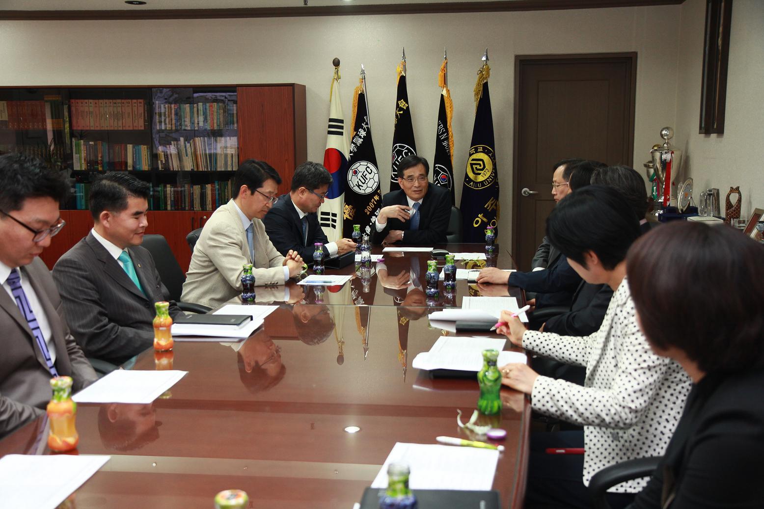 제12회 학교법인 대우학원 산하기관 교직원 축구대회가 지난 15일 오전 11시부터 아주대학교의료원 주관으로 아주대학교 잔디구장에서 개최됐다. 이번 대회에는 학교법인 대우학원 산하 기관인 아주대학교, 아주자동차대학, 아주대학교의료원, 대우병원에 소속된 70여 명의 선수가 참가했다. 이 자리에는 추호석 대우학원 이사장, 소의영 아주대학교의료원 의료원장, 유희석 아주대학교병원 원장, 강재규 대우병원 병원장, 이종화 아주자동차대학 총장 등 기관장들과 교직원들이 참석했다. 풀리그로 치러진 이번 대회 결과 2승1무를 기록한 아주대학교가 우승기를 차지했다. 아주대학교 팀은 우승후보 대우병원과 1대1로 비겼으나 아주자동차대학과 아주대의료원을 각각 3대0, 2대1로 꺾었다. 최우수 선수상은 아주대학교 최진구 선수에게, 득점상은 대우병원 유재후 선수에게 돌아갔다. 추호석 이사장은 인사말을 통해 무더운 날씨에도 불구하고 대회에 참가한 각 팀의 선수단과 응원단에게 감사의 말을 전하며, 앞으로 도 학교법인 대우학원 산하기관의 단합과 교류를 위해 여러 행사를 진행하겠다고 말했다. 사진1. 왼쪽부터 우승을 품에 안은 아주대학교 팀의 최영호 계장, 추호석 대우학원 이사장 사진2. 대회 시작전 선서를 하고 있는 선수 대표와 선수단