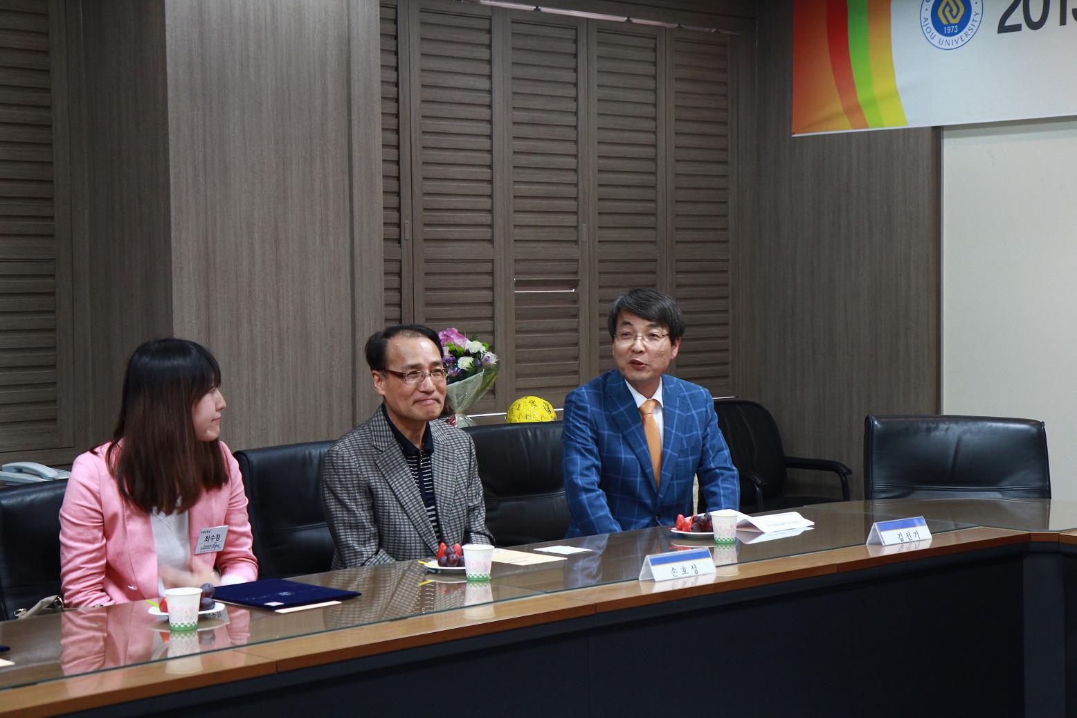 약학대학 미래발전위원회 위원 위촉식이 24일 우리 학교 약대 학장실에서 진행됐다. 발전위원회는 약대 발전기금 모금 및 미래발전방안 추진을 위해 발족됐다. 이날 열린 위촉식에는 안재환 총장과 약대 미래발전위원회 위원으로 위촉된 교내외 인사, 교직원, 학생대표가 참석했다. 안 총장이 직접 위원들에게 임명장을 전달했다. 미래발전위원회는 위원장을 맡은 이범진 약대 학장을 포함해 총 18명으로 구성되어 있다. 이강추 한국신약개발연구조합 회장, 문희 한국마약퇴치운동본부 이사장, 강덕영 한국유나이티드제약 사장, 김원배 동아ST 대표이사 부회장, 권혁구 약사공론 사장, 강석희 CJ E&M 대표, 백우현 한국제약기술교육원 원장, 김동연 일양약품 사장, 정희용 도병원약국 대표, 김남주 약국파낙스 대표, 함삼균 경기도약사회장, 박성진 수원시약사회장, 최종욱 아주대 총동문회장, 문창규 약대 대우교수, 정이숙 약대 학과장, 서원희 약과학연구소장이 위원으로 위촉됐다. 임기는 올 4월부터 내년 5월까지 1년이다.