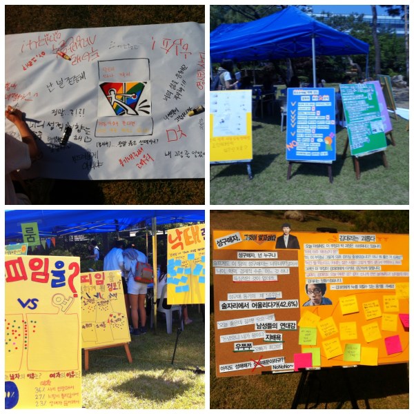 빛나는 그린라이트의 현장에서. 누구나 이론으로는 알고 있을지라도 막상 나의 일상이 되어버리면 경계선을 긋고 막힌 생각을 하기도 한다. 혹은 잘못 알고 있거나 아직 잘 알지 못해서 얼렁뚱땅 넘어가는 경우도 많다. 늘 알고 있다고 자부하는 익숙함이지만 그렇기에 오히려 서툴 수 있는 성평등. 올바른 성평등문화를 이끌어 가기 위해 하나의 캠페인이 펼쳐졌다. 바로 지난 5월 29일 목요일에 펼쳐진 를 타이틀로 내세운 성평등문화캠페인이 바로 그것이다. 성평등 문화캠페인 는 성폭력상담센터에서 주관하는 캠페인으로 올해 10회를 맞았다. 성폭력상담센터에서는 대학 내 성차별을 근절하고 성평등한 문화를 정착시키기 위하여 해마다 성평등문화 캠페인을 개최하고 있다. 이 날 현장에는 성평등문화캠페인 서포터즈 10기와 양성평등위원회 위원 등 약 30여명의 학생들을 비롯하여 성매매 관련 인권단체 이룸, 경기해바라기여성아동센터, 수원탁틴내일, 타로상담학회, 수원여성의전화 등 외부 기관에서도 함께 자리를 빛내주었다. 오후 1시부터 진행된 행사는 총 8개의 부스로 , , , 를 진행했던 교내 학우들과 , , , , 을 진행했던 외부 기관이 동시에 진행했다. 이번 행사에 참여한 서포터즈 10기와 양성평등위원회 위원들이 꼬박 두 달간 준비해 온 결과물들을 함께 나누는 장을 펼쳐보였다. 이들은 지난 2개월 동안 함께 의견도 나누고, 토론도 하는 등 성평등에 대해 공부하며 일주일에 한 번씩 정기적인 모임을 가져왔다. 그리고 네가지의 주제를 선택하고 조를 나누어 행사 당일 부스에 설치할 판넬과 행사 콘텐츠를 손수 기획,제작하는 등의 열의를 보였다. 행사 당일에는 꽤나 더운 날이었음에도 불구하고 많은 학우들이 캠페인의 현장을 찾아 부스를 방문했다. 학우들은 성소수자의 유형이나 그에 해당하는 유명인사들에 대해 알아보기도 하고, 이라는 주제에 대답도 해보며, 임신과 낙태에 대한 퀴즈풀어보기,스토킹 바로 알기 퀴즈등 다양한 정보활동을 통해 성평등에 대한 지식과 정보를 흥미있게 받아들이는 시간을 보냈다. 또 직접 체험해보는 시간도 많았는데 부스에서 서로 화장도 해주고 군복도 입어보는 등의 활동을 하거나, 본인의 생리주기에 맞춰 팔찌를 만들어본다거나 직접 경험해보는 임신체험까지 오감으로 느낄 수 있는 활동들도 부스에서 만나볼 수 있었다. 나이와 성별에 상관없이 함께 어우러져 진행된 본 캠페인은 마감시간까지 타로카드 부스에 줄지어 서있는 등 성황리에 진행되었다. 또한 참가했던 학우들도 처음 경험해보는 성역할 바꾸기나, 임신 체험, 그리고 쉽게 알 수 없었던 피임법 등의 다양한 정보제공을 통해 많이 배우고 가는 시간이었다며 즐거운 마음으로 돌아가기도 했으며, 부스를 진행한 학우들도 오히려 본인들이 많이 배웠다며 뿌듯한 마음으로 행사를 마무리했다.