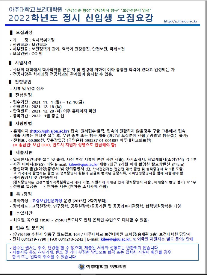| 14202 | 입학 | 보건대학원교학팀 | 2021-11-02 | ||