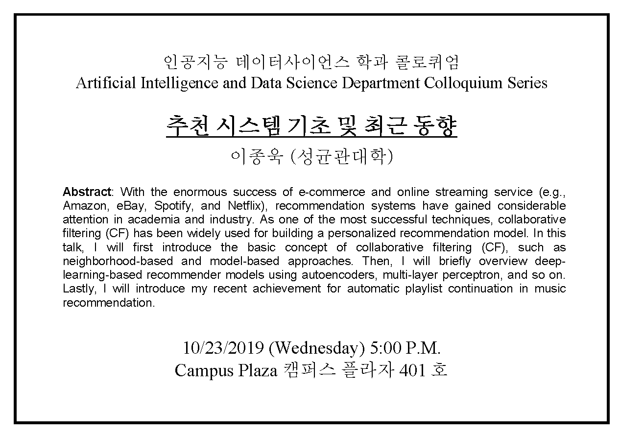 | 8995 | 학술 | 인공지능데이터사이언스학과 | 2019-10-17 |