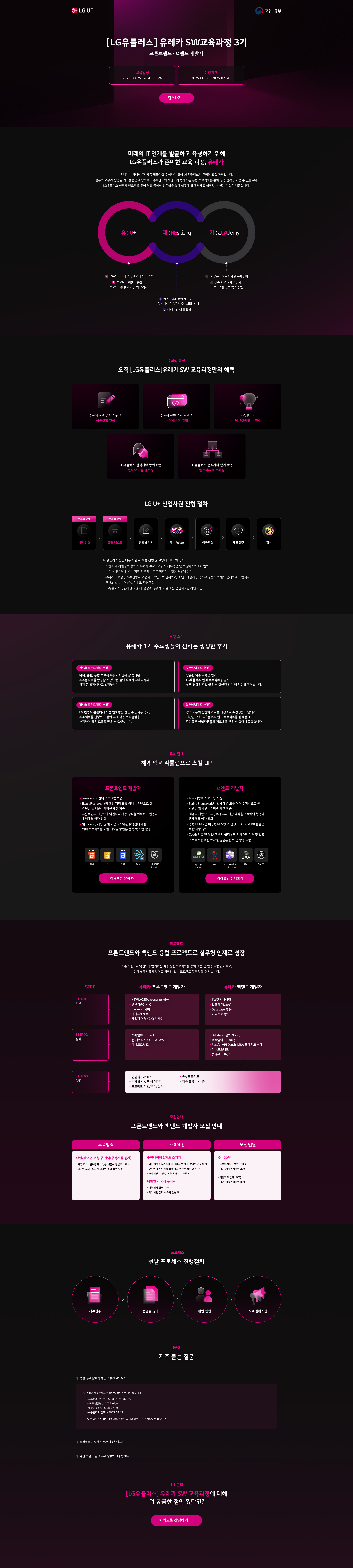 [일자리+센터] [외부교육]LG유플러스 신입채용 서류면제혜택! 유레카 SW 아카데미 교육생 모집(~7/28, 13시)
