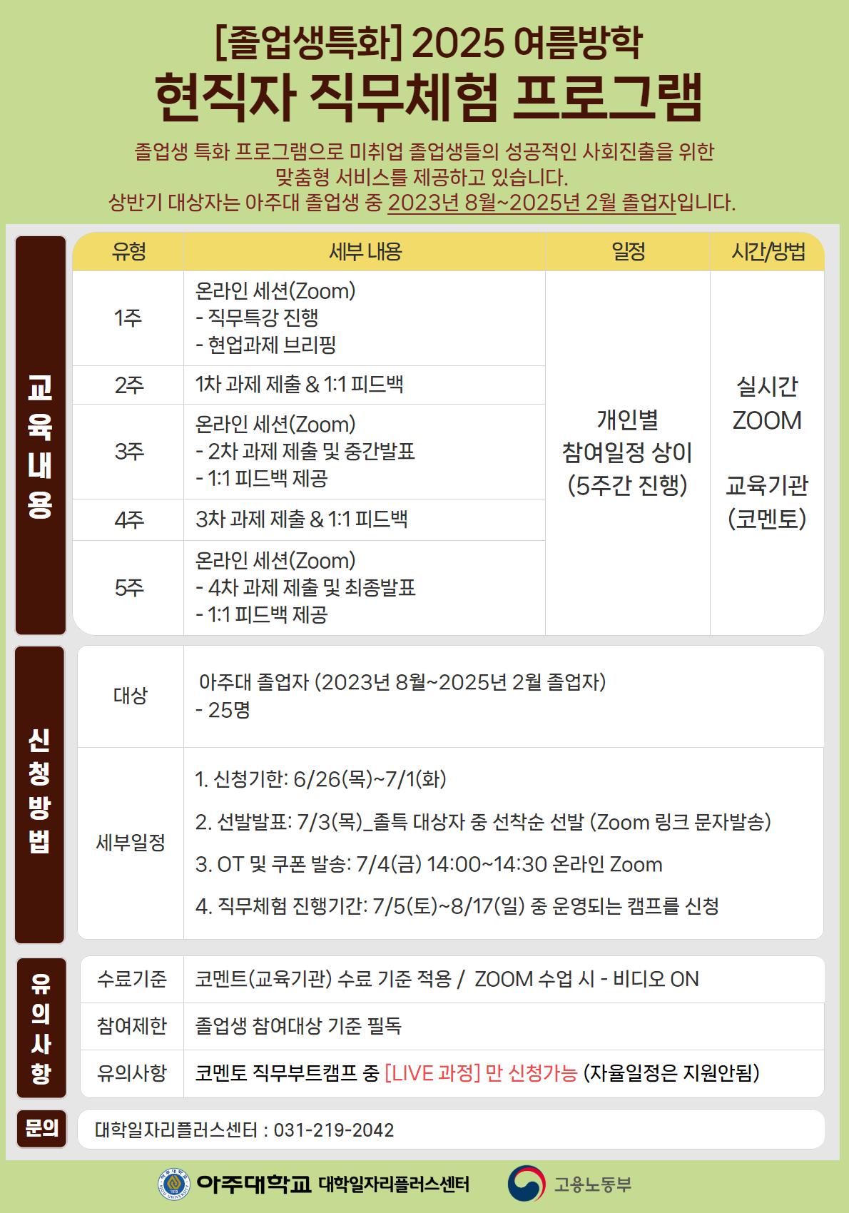 | 24639 | 취업 | 대학일자리플러스센터 | 2025-06-26 | ||