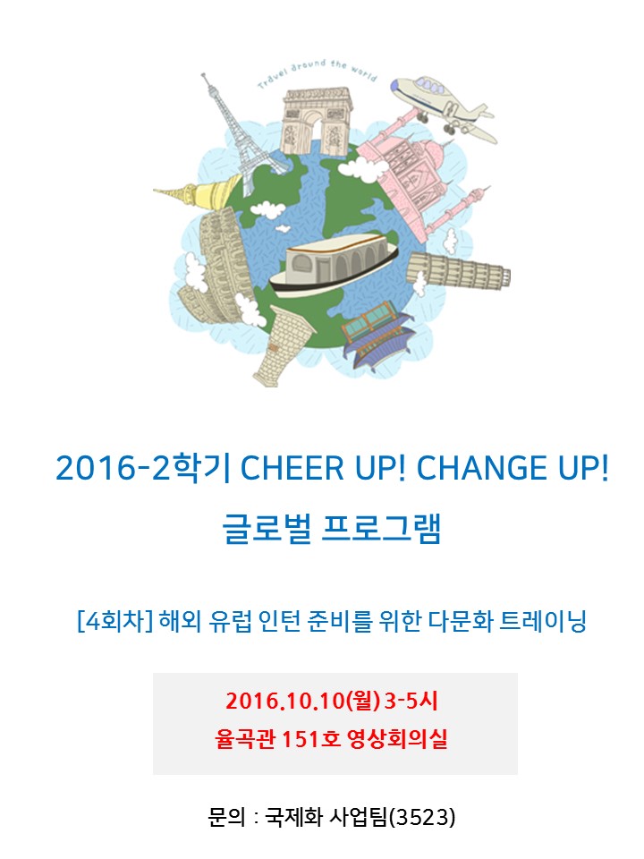 2016-2학기 CHEER UP! CHANGE UP! 글로벌 프로그램 [4회차] 해외 유럽 인턴 준비를 위한 다문화 트레이닝