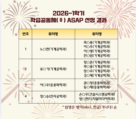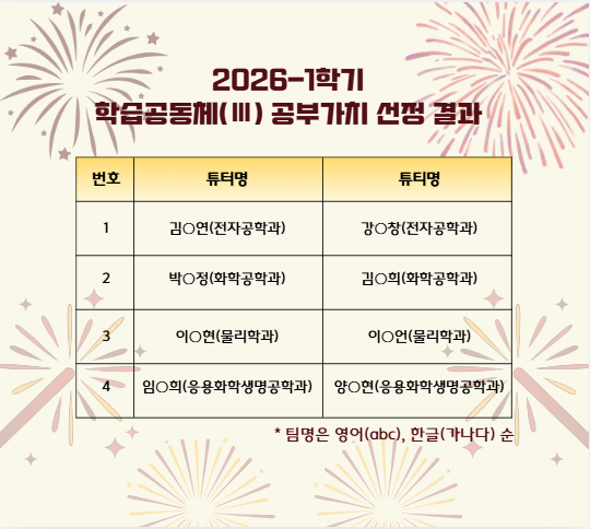 [비교과] [학습법] 2026-1 학기 학습공동체 선정 결과 안내