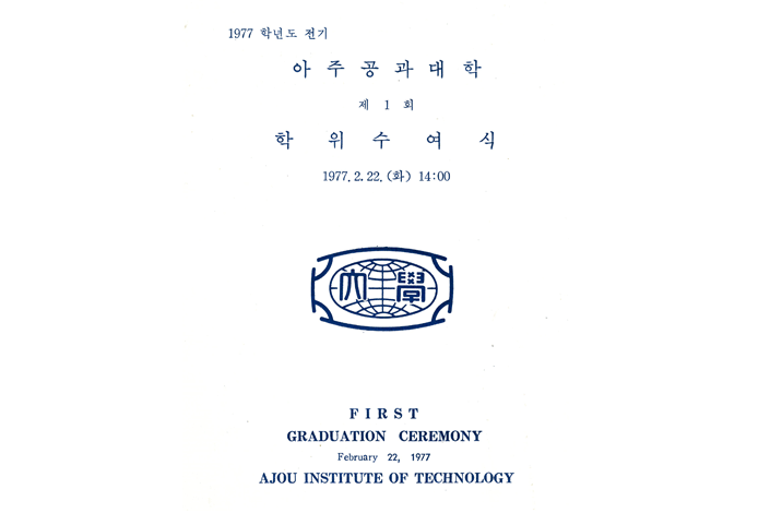 "아주공업초급대학" 으로 출발한 아주대학교는 개교 당시 전자공학, 정밀기계공학, 발효화학공학, 공업경영학 등 4개학과가 설치되어 280명을 모집하였습니다. 이듬해 ‘아주공과대학’으로 승격되어 1977년에 제 1 회 졸업생을 배출하였습니다.
