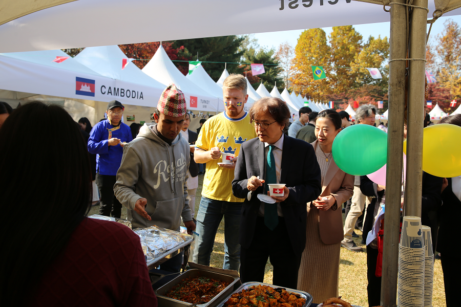 11월 7일, 우리 학교에 재학중인 외국인 학생들이 자국의 문화를 공유하는 '아주 인터내셔널데이(Ajou International Day'가 가온마당(체육관 뒤 잔디밭)에서 프랑스와 스페인, 미국, 파키스탄, 캄보디아, 우즈베키스탄, 러시아, 스웨덴 등 40여개국에서 온 외국인 학생 300여명이 참여한 가운데 개최됐다. 박형주 총장은 처장단과 함께 학생들이 운영하는 부스를 방문하여 학생들을 격려하고, 각국에서 우리 학교에 온 학생들과 호흡하는 시간을 가졌다.