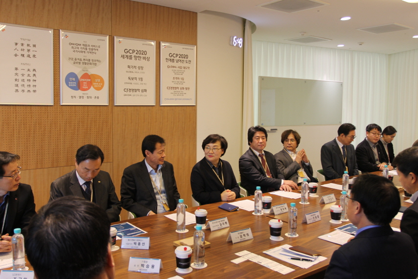 박형주 총장은 1월 23일 CJ 연구소인 광교 Blossom Park에서 열린 '기업연구소 혁신 성장 간담회'에 참석하여 산학협력방안 등 기업연구소 성장 방안에 대한 의견을 나누었다. (문미옥 과학기술정보통신부 제1차관, 민상기 건국대학교 총장 등 참석)