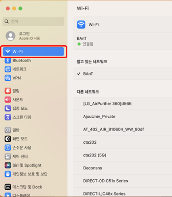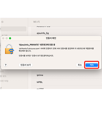 4. Wi-Fi SSID 목록 중 “AjouUniv_PRIVATE” 클릭