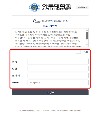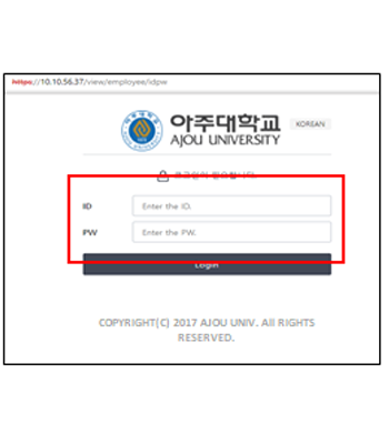 3. 관리자에게 발급 받은 ID/PASSWORD 입력
