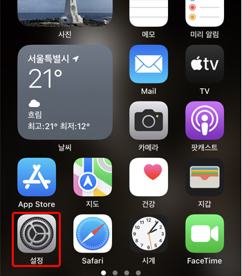 1.설정 아이콘을 클릭하여 설정화면으로 이동