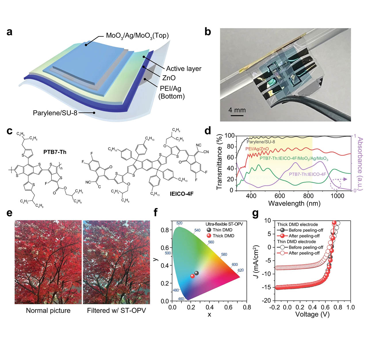 우리 대학 연구진이 투명하고 유연한 소재의 유기 태양전지 전극을 개발했다. 이를 활용하면 건물과 차량의 외벽, 비닐하우스의 지붕, 웨어러블 기기 등 그동안 태양광 발전이 어려웠던 곳에도 안정적으로 태양전지를 적용할 수 있게 될 전망이다. 박성준 교수(전자공학과)·김종현 교수(응용화학생명공학과·대학원분자과학기술학과) 연구팀은 유연 고내구성의 반투명 유기 태양전지를 개발했다고 밝혔다. 해당 내용은 '초유연 반투명 유기태양전지(Ultra-flexible semitransparent organic photovoltaics)'라는 논문으로 유연 전자 소자 분야 학술지 <npj 플렉서블 일렉트로닉스(npj Flexible Electronics, IF=12.019 IF%=3.804)> 6월3일자에 게재됐다. 아주대 이한비(전자공학과 석사 졸업)·김재현(지능형반도체공학과 석사 재학) 학생과 정소영 영국 임페리얼컬리지 박사가 공동 제1저자로 참여했고, 아주대 박성준 교수(전자공학과)·김종현 교수(응용화학생명공학과·대학원 분자과학기술학과)와 공주대 이승훈 교수(신소재공학부)가 공동 교신저자로 함께 했다. 태양광 발전은 지속가능한 재생 에너지원으로 저렴한 운영 비용과 다양한 활용 가능성으로 주목을 받아왔다. 그러나 기존 실리콘 기반의 무기 태양전지는 무겁고, 어두운 색을 띄는 데다 유연하지 못해 다양한 형태로 활용하기에는 어려움이 많았다. 이에 최근 학계와 산업계는 롤러블·웨어러블 기기나 곡면의 건물과 지붕에 활용할 수 있고, 창문이나 비닐하우스 지붕처럼 빛을 그대로 투과시켜야 하는 곳에도 적용 가능한 차세대 유기 태양전지 개발에 관심을 기울여 왔다. 그러나 기존 유기 태양전지에서 사용해온 하부 전극 물질인 ITO(인듐 주석 산화물, Indium tin oxide)는 기계적 안정성이 낮아, 유연 소자에 적용하기 어렵다는 한계를 보여 왔다. 이에 공동 연구팀은 기존에 유기 태양전지에 사용되어 온 두꺼운 두께의 ITO 전극과 불투명 상부 전극을 대체할 수 있는 방안을 찾는 데 주력했다. 연구팀은 연성이 좋은 금속 중 하나인 은(Ag)을 주목, Ag 금속을 초박막 형태로 쌓아 유연성이 뛰어난 투명 하부 전극을 제작했다. 또 절연체-금속-절연체 구조의 박막을 만들어 금속에서 발생하는 난반사를 상쇄하는 AR 코팅(Anti-reflection coating) 기법을 도입, 흡광성능을 극대화하는 데 성공했다. AR 코팅은 빛의 반사를 방지하는 기술의 일종으로 유리판이나 액정 패널의 표면, 광학 렌즈 등 빛의 반사를 막고자 하는 경우에 이용된다. 연구팀은 AR 코팅 기법을 활용해 상쇄 간섭을 통한 반사광의 소멸을 유도, 이를 통해 소자의 전체적 투명도를 높였다.연구팀은 이렇게 개발한 초유연 반투명 유기 태양전지에 대해 가시광선 영역에서 약 80% 이상의 투과율을 보이며, 200%의 인장을 1000번 이상 가해도 견딜 수 있는 내구성을 가지고 있음을 확인했다. 새로운 유기 태양전지 전극은 머리카락 두께의 50분의 1 수준인 2마이크론 두께로, 두께가 얇아짐으로써 소자의 강성도가 최소화되어, 기계적인 변형에서도 안정적인 개발이 가능하다. 연구팀이 개발한 초유연 반투명 유기 태양전지의 유연성은 현존 최고 수준이다. 이에 사물인터넷(IoT), 롤러블·웨어러블 기기와 곡면으로 된 건물 및 비닐하우스 등의 외벽에 적용이 가능할 전망이다. 높은 기계적 안정성을 바탕으로, 태양 에너지로 자가 구동할 수 있는 다양한 웨어러블 기기에도 활용할 수 있을 것으로 보인다. 박성준 교수는 "얇고 유연하며, 기계적 변형에 대해 내구성이 높은 유기 태양전지 소자를 개발함으로써 새로운 연구 분야를 개척해냈다는 점에 이번 연구의 의의가 있다"며 "기존 태양전지의 불투명한 성질로 인해 활용이 어려웠던 건물·차량의 창문과 비닐하우스 외벽 등에도 부착이 가능할 것"이라고 설명했다. 이번 연구는 한국연구재단의 우수신진연구. 한국산업기술평가관리원의 시장주도형k-센서기술개발사업, 미래창조과학부의 대학ICT연구센터육성지원사업, 한국연구재단(과학기술정보통신부)의 2021년 전략형 국제공동연구사업(한국-호주 공동연구)의 지원을 받아 수행됐다. * 제일 위 사진 설명 : (a) 초유연 반투명 유기 태양전지의 단면과 빛의 투과 과정에서 발생하는 현상에 대한 모식도 (b) 초유연 반투명 유기 태양전지의 소자 구조 모식도 (c) 연구팀이 개발한 초유연 반투명 유기 태양전지의 실제 사진 이번 연구에 참여한 연구진. 제일 위 왼쪽부터 정소영 영국 임페리얼컬리지 박사(제1저자), 이한비 아주대 전자공학과 석사(제1저자), 김재현 아주대 지능형반도체공학과 석사 재학생(제1저자). 아래 왼쪽부터 박성준 아주대 전자공학과 교수(교신저자), 김종현 아주대 응용화학생명공학과·대학원 분자과학기술학과 교수(교신저자), 이승훈 공주대 신소재공학부 교수(교신저자) (위) 연구팀이 개발한 소자의 200% 양축 인장 변형 반복 실험 실제 모습 (아래) 인장 실험의 1000번 변형 반복 후 소자 성능 실험 결과. 1000번의 인장 실험 후, 소자의 효율을 측정한 결과 기존 대비 73% 정도의 효율이 관찰되었으며 이는 현재까지 개발된 해당 소자 중 가장 뛰어난 성능이다.