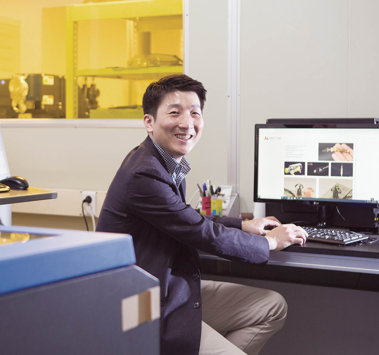 우리 대학 연구진이 초박막형 두께로 전자기파의 주파수를 고효율로 변환시킬 수 있는 소재를 개발했다. 사람 머리카락 굵기의 10분의 1 수준에 해당하는 두께로, 이 소재 설계 기술을 이용하면 레이저와 통신 등을 위한 다양한 광학 변환 소재의 개발이 가능해질 전망이다. 권오필 아주대 교수(응용화학생명공학과·대학원 분자과학기술학과, 사진 왼쪽)와 이상민 한국과학기술원(KAIST) 교수(물리학과, 사진 오른쪽) 연구팀은 기존 광학결정의 비선형성을 월등히 뛰어넘는 새로운 양이온과 이에 적합한 음이온을 도입하는 새로운 결정 기술을 적용하여, 기존에 없던 극한의 비선형광학 특성을 가지는 유기결정을 개발했다고 밝혔다. 이번 연구 성과는 소재 분야 저명 학술지인 <어드밴스드 펑셔널 매터리얼즈(Advanced Functional Materials)> 온라인판에 게재되었다. 논문 제목은 "극한 초분극도를 가지는 새로운 종류의 유기 결정: 고효율 및 광대역 평면 스펙트럼 대역을 가지는 테라헤르츠 발생(A New Class of Organic Crystals with Extremely Large Hyperpolarizability: Efficient THz Wave Generation with Wide Flat-Spectral-Band)"이다.비선형 광학(nonlinear optics)은 빛과 물질 간에 일어나는 비선형적 특성을 연구하는 학문으로, 주파수(파장)로 대표되는 빛의 특성을 바꾸는 광변조 기술과 고감도 분석 등에 활용된다. 이러한 광학 연구에 쓰이는 비선형 광학 결정(nonlinear optical crystal)은 물질 내에서 주파수를 비롯한 다양한 빛의 특성을 조절할 수 있는 소재다. 전자기파의 주파수를 높은 주파수로 변환하거나, 반대로 낮은 주파수로도 바꿀 수 있어서다. 빛의 핵심 특성인 주파수를 변환할 수 있다면, 빛의 특성 조절을 통해 다양한 방식으로 빛을 광범위하게 활용할 수 있게 된다. 예를 들어 눈으로 볼 수 없는 적외선의 빛을 높은 주파수의 가시광선으로 바꿀 수 있어 눈으로 확인할 수 있게 되고, 이와는 반대로 적외선의 빛을 이용해 낮은 주파수인 테라헤르츠파(terahertz wave, THz)를 만들어 낼 수도 있다. 또한 빛의 특성을 조절해 빛을 이용하는 다양한 분석 장비에서 그동안 측정하지 못하던 소재를 분석할 수 있게 되거나, 이전에 비해 더 넓은 부분을 볼 수도 있게 된다.그러나 기존에 활용되던 유기 소재 및 무기 소재의 광학 결정은 낮은 테라헤르츠파 주파수 변환 효율을 나타낸다는 점이 한계로 지적되어 왔다. 이를 개선하기 위해 밀리미터 이상 두께의 광학 결정을 사용하는 방법이 제시되었으나, 이러한 방법 역시 여러 측면에서 한계를 보여왔다. 예를 들어 좁은 대역의 테라헤르츠파만을 발생시키거나, 주파수 대역에 많은 공백이 나타나는 등의 문제다. 그동안 테라헤르츠 광원 소재를 연구해 온 권오필 교수 연구팀은 새로운 설계를 통해 전자기파의 주파수를 고효율로 변환시킬 수 있는 이온성 유기광학 소재를 개발하는 데 성공했다. 테라헤르츠파(terahertz wave, THz)는 빛과 전파 두 가지 특성을 동시에 띄는 독특한 전자기파다. 인체에 무해하고 인간의 눈에 보이지 않는 부분까지 선택적으로 관찰할 수 있다. 의료와 보안, 환경, 산업계 등 다양한 분야에서 응용이 가능하다.이온성 유기광학 소재는 양이온 분자와 음이온 분자로 이루어져 있다. 기존에 개발되어 주로 사용되어 오던 이온성 광학 소재의 경우, 사용된 음이온의 종류가 매우 한정적이었으며 유사한 크기를 가지고 있었다. 주파수 변환 효율은 비선형성이 높을수록 향상되는데, 소재의 비선형성 향상을 위해 양이온 분자를 새로 설계해야 하는 상황에서는, 기존의 음이온 도입으로 문제를 해결하기 어렵다는 한계가 존재했다. 이에 공동 연구팀은 지금까지 보고된 비선형성을 뛰어넘는 극한의 비선형성을 가지는 새로운 양이온 분자를 설계하면서, 동시에 이에 적합한 음이온을 도입했다. 연구팀은 이를 기반으로 마이크로미터 두께의 초박막형 주파수 변환 소재를 개발해냈다. 이번 연구에서 개발한 10 마이크로미터 두께의 새로운 초박막형 광학결정은 기존에 상업화되어 있는 무기 결정에 비해 100분의1 수준 두께다. 초박막형 두께로도 기존 무기 결정 보다 약 5배 높은 주파수 변환 효율을 보였으며, 더 넓은 대역의 더 평평한 스펙트럼 형태를 가지는 테라헤르츠파를 발생시킴을 확인했다. 고효율 광대역 테라헤르츠파의 발생은 더 넓은 주파수 대역에서 더욱 고감도로 분석이 가능함을 의미한다. 이에 기존의 다른 레이저로는 탐지할 수 없었던 위험·유해한 물질의 고감도 식별이나 보안 측면에서 장점을 가지는 테라헤르츠 탐지·분석 기술 등에 응용될 전망이다. 권오필 교수는 "이번에 개발한 새로운 비선형 광학 결정 소재는 테라헤르츠뿐 아니라 다양한 전자기파 변조·변환 소자에도 적용 가능할 것으로 기대한다"며 "이와 같은 고효율 비선형 광학 소재는 전자기파의 주파수, 위상, 크기 등을 바꿀 수 있는 다양한 레이저와 통신 소자에 활용할 수 있다"고 말했다.(그림 위) 아주대·카이스트 공동 연구팀이 새로 개발한 초박막형 변환소재는 기존 무기소재보다 강하고, 넓은 영역의 평평한 테라헤르츠 스펙트럼을 발생시킴. 이는 이상적인 테라헤르츠 분광기 광원(하단 좌측)의 