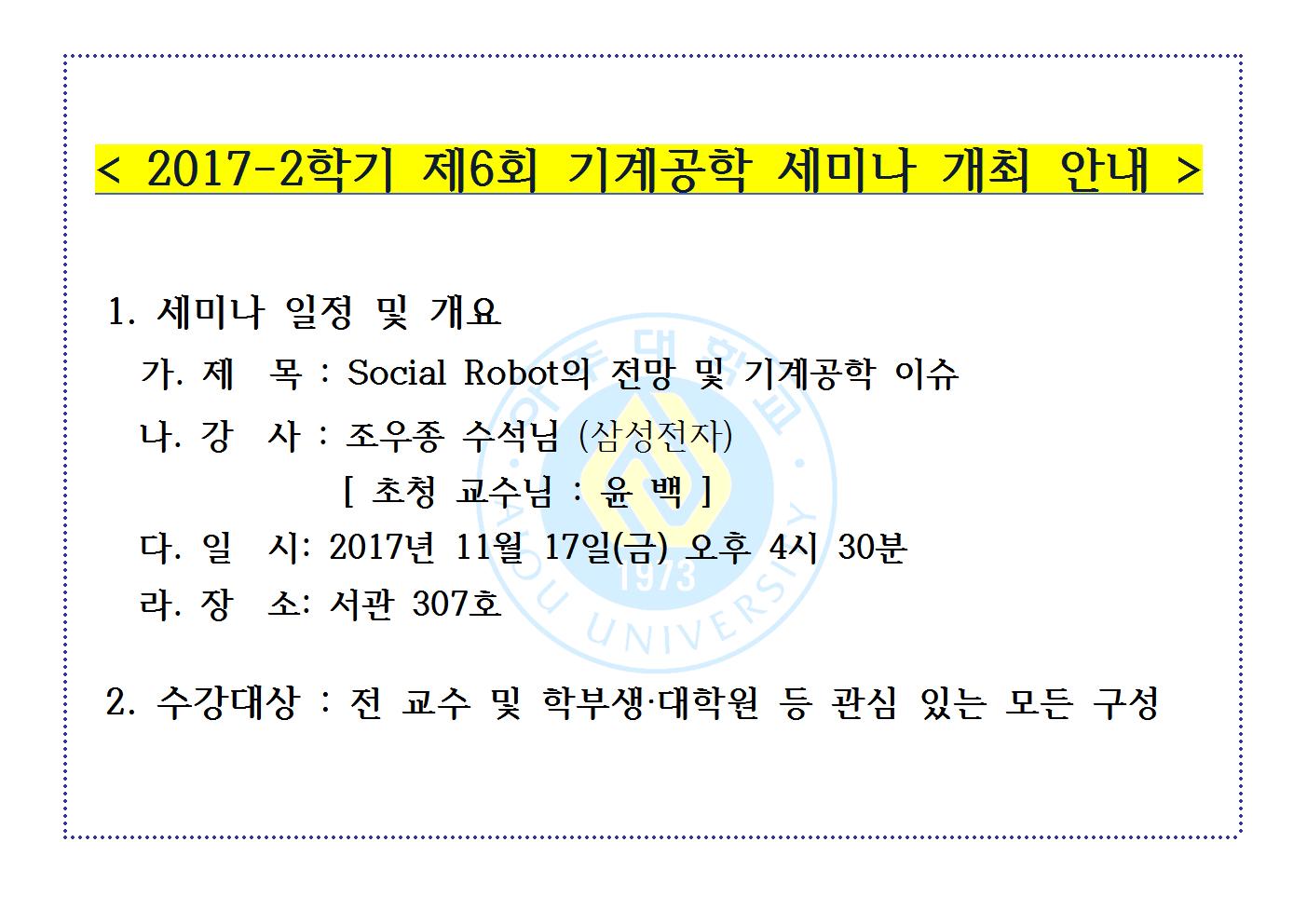 | 573 | 세미나/포럼 | 교내 | 김수현 | 2017-11-06 |