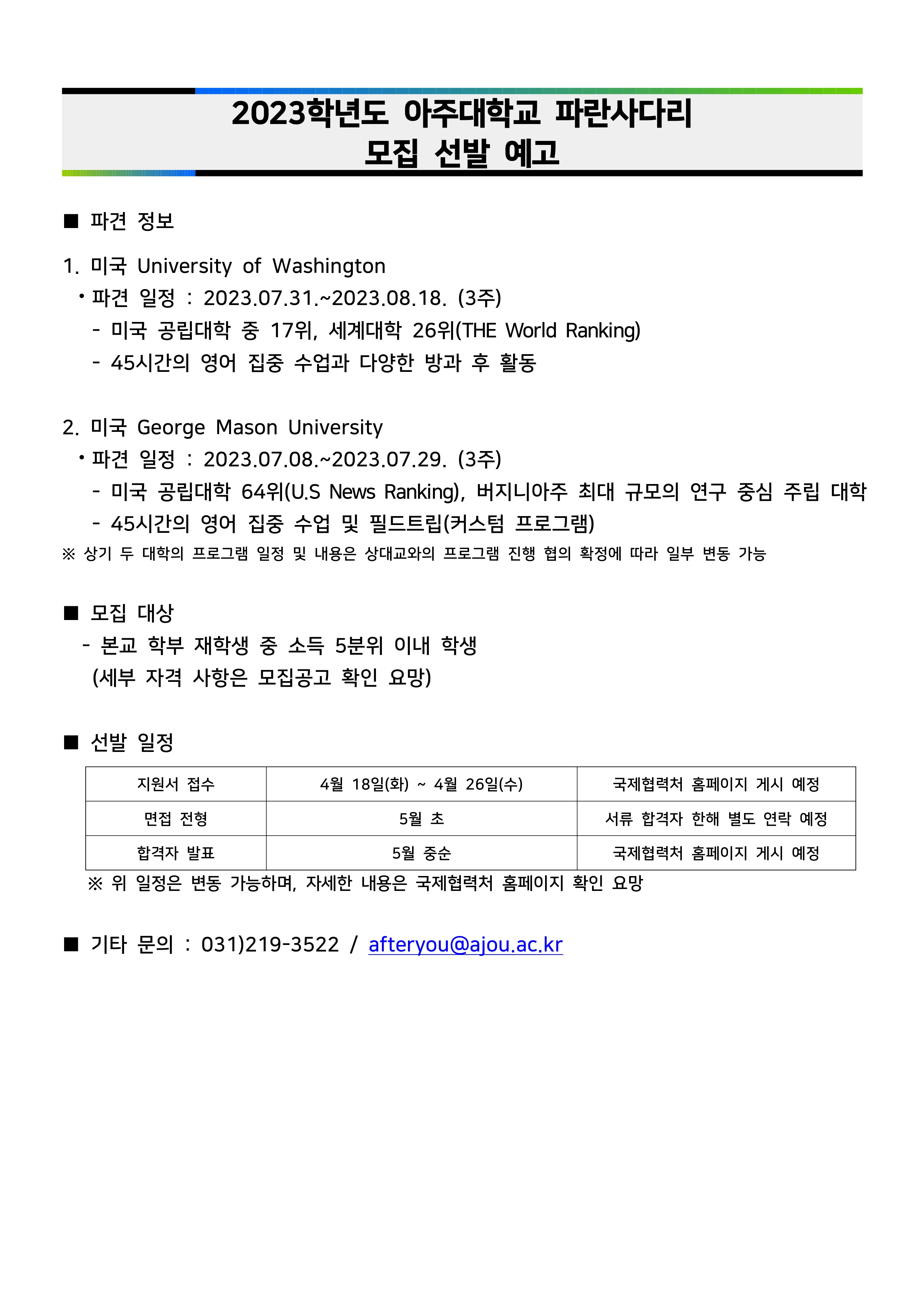 | 843 | Outgoing | 국제교류팀 | 2023-04-22 | ||